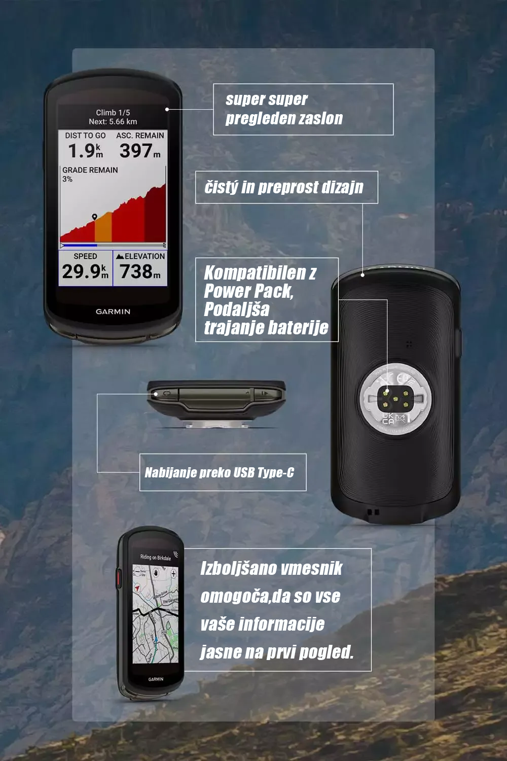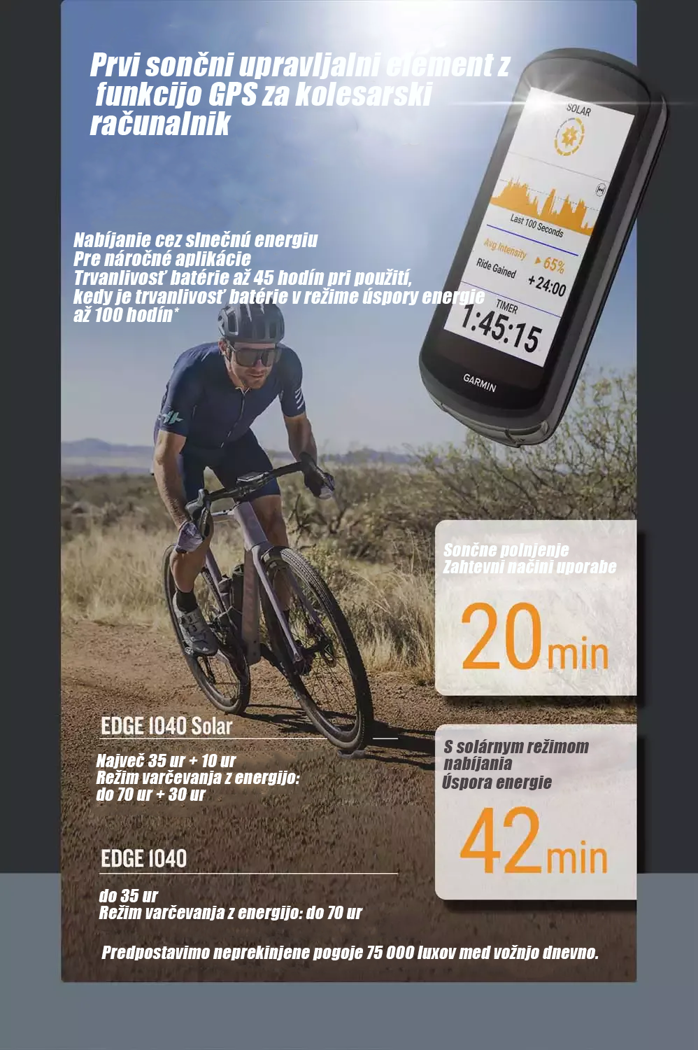 Garmin Edge 1040, sončno napajalni kolesarski računalnik